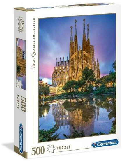 Barcelona talán legismertebb turista látványossága a Sagrada Familia. A Katalónia fővárosában található templom építése még 1882-ben kezdődött el és a mai napig nem fejeződött be. A vízben tükröződő, kivilágított, monumentális épület látható ezen a kiváló minőségű kirakón. Az elkészült és bekeretezett kép kiváló dísze is lehet a szobának. Az 500 darabb