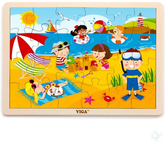 Fedezd fel a Viga vidám képeivel díszített fa puzzle-t, amely nemcsak szórakoztató, hanem fejlesztő hatású is! Ez a kirakós játék remekül hozzájárul a gyerekek kombinációs képességeinek, emlékezetének és térlátásának fejlődéséhez, miközben segít a problémamegoldó készségek elsajátításában is. A kicsik feladata, hogy a különböző ábrákat a megfelelő hely