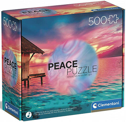 A minőségi, olasz márkájú Clementoni megalkotta a Clementoni 35120 Peace Puzzle - Élj a mának 500 darabos kirakósát. Ez a csodálatos kirakós amellett, hogy maradandó játékidőt nyújt, egyszerre kápráztat el képi világával, és simítja el lelke hullámait, mely köszönhető képi megjelenése mellett az egyedi Spotify lejátszási lista hozzáférésnek, melyet a csomagolás h