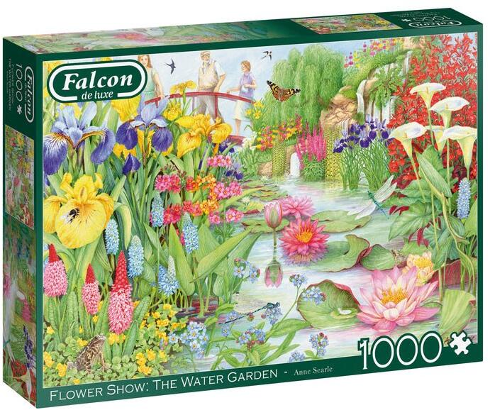 1000 darabos kirakó . Márka: Falcon Művész: Anne Searle Kirakott kép méret: 68 x 49 cm Doboz méret: 36,5 x 27 x 6,6 cm Eredeti cím: Flower Show: The Water Garden GTIN: 8710126112823
