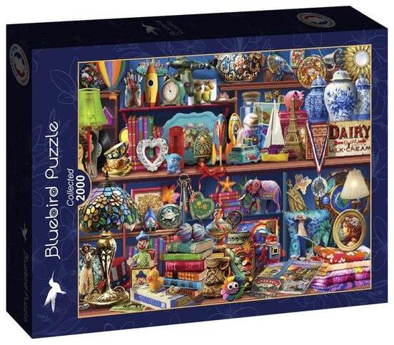 A francia Bluebird 2019 óta van jelen a kirakók világpiacán. Magas minőségű, környezettudatos technológiával készült, mégis megfizethető áron elérhető puzzle képei közt elsősorban művészi alkotások találhatók. A 2000 db-os Bluebird puzzle - Collected című képén egy csodás gyűjteményt láthatunk. Találunk itt mindenféle érdekes tárgyakat a világ minden részér
