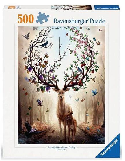 A Ravensburger a világ legnagyobb puzzle gyártója. Széles választékban kapható kirakói a minőséget és a sokszínűséget képviselik. A Ravensburger 500 db-os - Csodaszarvas című képén egy csodaszép szarvas látható, akinek az agancsán megelevenednek a természet szépségei.