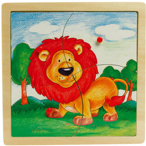 A fogantyúval ellátott fa puzzle a legtökéletesebb választás első kirakónak kicsiknek. A kirakó méretének és a fogantyúnak köszönhetően a legkisebbek is könnyen kézbe tudják venni. Az oroszlános fa puzzle 4 darabból áll. A játék során a kicsik megismerkednek a színek, formák elnevezéseivel. Mindemellett fejlődik a finommotorikus és formafelismerési készségük, vala