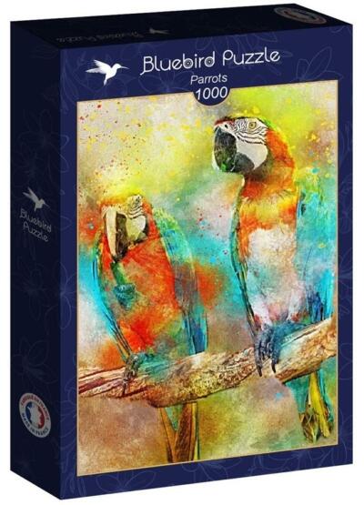 A francia Bluebird vállalat 2019-ben lépett piacra kiváló minőségű kirakóival, megfizethető áron. Fontos szempont számukra a környezettudatosság is, ezért kirakóik dobozait úgy tervezték, hogy minimális mennyiségű kartont használjanak fel a gyártás során. A Bluebird 1000 db-os puzzle - Parrots című képén a feltűnő szépségű papagájfaj, az arapapagáj képviselői,