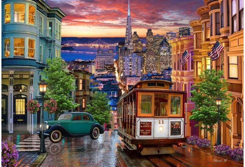 A francia Bluebird 2019 óta van jelen a kirakók világpiacán. Magas minőségű, környezettudatos technológiával készült, mégis megfizethető áron elérhető puzzle képei közt elsősorban művészi alkotások találhatók. Az 1000 db-os Bluebird puzzle - San Francisco Trolley című képén egy san francisco-i utcaképet láthatunk egy villamossal és egy autóval.