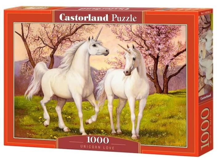 A Castorland kirakók sokszínűségükről ismertek és igen széles választékban kaphatóak. Hagyományos képi témáik mellett különlegesebb, városokat és nevezetességeket ábrázoló kirakókat is találunk kínálatukban. A Castorland 1000 db-os puzzle - Szerelmes unikornisok (C-105236) című kirakó képén egy szerelmes unikornis pár látható, akik szaladnak a réten.