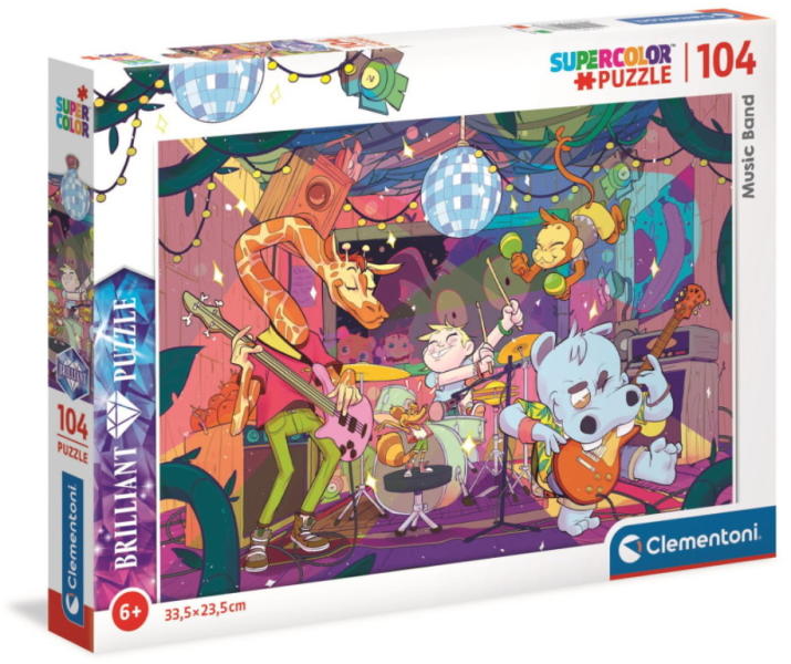 Az olasz Clementoni kirakók kiváló minőségű, strapabíró darabokból készülnek, a puzzle széles választékban kapható minden korosztályt megcélozva. A Clementoni 104 db-os Szuper Színes Ragyogó puzzle Music Band című képén egy vidáman zenélő banda jelenik meg.