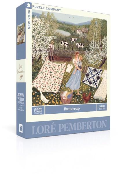 500 darabos kirakó . Márka: New York Puzzle Company Művész: Loré Pemberton Kirakott kép méret: 48,26 x 48,26 cm Doboz méret: 25,5 x 20,5 x 5 cm Eredeti cím: Buttercup GTIN: 840291701992