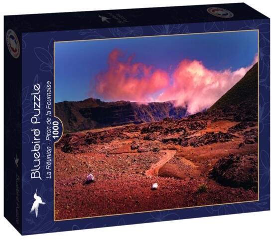 A francia Bluebird vállalat 2019-ben lépett piacra kiváló minőségű kirakóival, megfizethető áron. Fontos szempont számukra a környezettudatosság is, ezért kirakóik dobozait úgy tervezték, hogy minimális mennyiségű kartont használjanak fel a gyártás során. A Bluebird 1000 db-os puzzle - La Réunion - Piton de la Fournaise című képén a francia Réunion egyik híres pajzsv