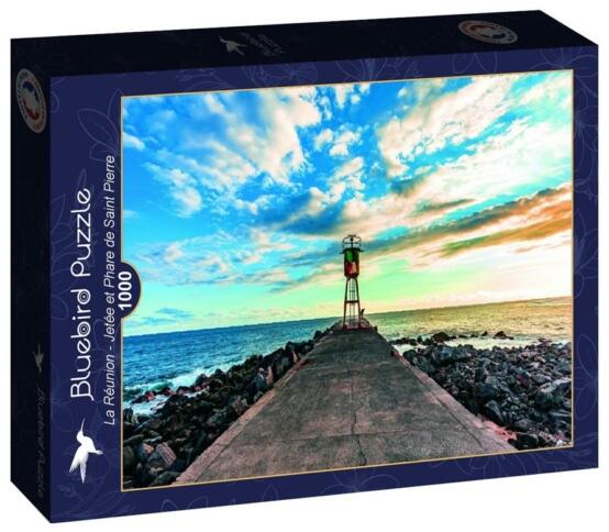 A francia Bluebird vállalat 2019-ben lépett piacra kiváló minőségű kirakóival, megfizethető áron. Fontos szempont számukra a környezettudatosság is, ezért kirakóik dobozait úgy tervezték, hogy minimális mennyiségű kartont használjanak fel a gyártás során. A Bluebird 1000 db-os puzzle - La Réunion, Jetée et Phare de Saint Pierre című képén a Madagaszkártól keletre ta
