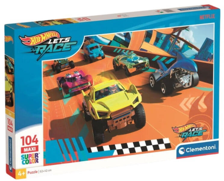 Ha száguldásra, kreativitásra, figyelmének edzésére és fejlődésre egyaránt ösztönözné 4 éves vagy annál idősebb kis sofőrjét és versenypilótáját, a Clementoni 25762 Super Color Maxi puzzle - Hot Wheels: Adj gázt! szett elképesztő választás, mert garantáltan elrepíti a gyerekeket a Hot Wheels kocsik versenyvilágába. Ez a 104 darabos kirakó , mely nagyobb, maxi eleme