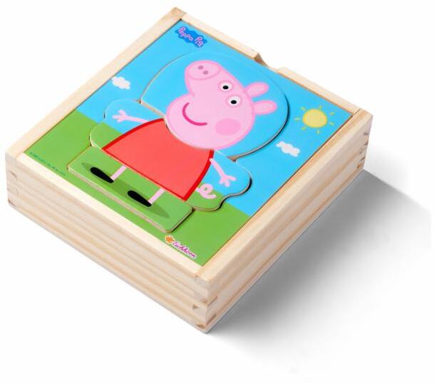 Az Eichhorn puzzle doboz 12 puzzle-darabot tartalmaz, különböző Peppa Pig ruhákkal. A gyerekek maguk dönthetik el, hogy Peppa Pig hercegnőnek, orvosnak öltözik. A ruhák tetszés szerint cserélhetők, fejlesztve ezzel kreativitását és motorikus képességeit. A Peppa Pig puzzle praktikus fadobozban érkezik, amely megkönnyíti a puzzle tárolását és tárolását. Az Eichhorn Peppa