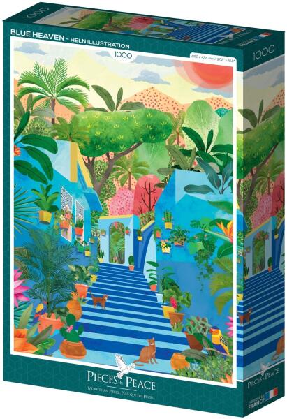 1000 darabos kirakó . Márka: Pieces & Peace Művész: Heln. illustration Kirakott kép méret: 47.8 x 69 cm Doboz méret: 35,5 x 24 x 5,5 cm Eredeti cím: Blue Heaven GTIN: 3667232001235