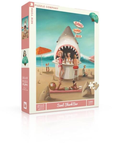 500 darabos kirakó . Márka: New York Puzzle Company Művész: Janet Hill Kirakott kép méret: 45,72 x 60,96 cm Doboz méret: 25,5 x 20,5 x 5 cm Eredeti cím: Sand Shark Bar GTIN: 819844019266