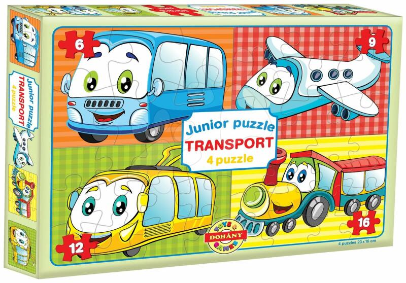 Puzzle Junior Transport egy szupermenő képkirakó, mely legkisebbeknek ajánlott 2 éves kortól. Ezek a nem mindennapi progresszív puzzlek fejlesztően hatnak a gyerekek képességeire. Közlekedési eszközök puzzle csomagban 4 fajta puzzle található, miközben mindegyikhez más-más mennyiségű puzzle darab tartozik. Képkirakózás a legegyszerűbb, 6 darabos képkirakóval kezdődik, m