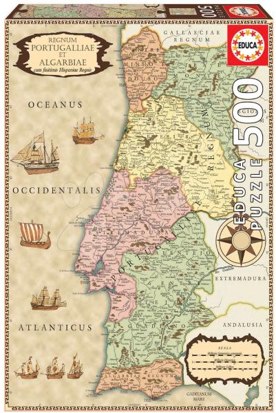 Puzzle kicsiknek és nagyoknak térkép ábrával a spanyol Educa vállalat műhelyéből. A képkirakó ábráján Portugália csodaszép korabeli térképe jelenik meg. Az egyedi puzzle csomag 500 darabos . Puzzle minőségi alapanyagból készült és összeillesztés után egy képet jelenít meg. Az elemek megfelelnek a biztonsági szabványoknak - biztonságosak gyerekek és felnőttek rész