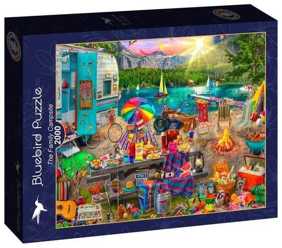 A francia Bluebird 2019 óta van jelen a kirakók világpiacán. Magas minőségű, környezettudatos technológiával készült, mégis megfizethető áron elérhető puzzle képei közt elsősorban művészi alkotások találhatók. A 2000 db-os Bluebird puzzle - The Family Campsite című képén egy csodás tó partján kempingező család látható.
