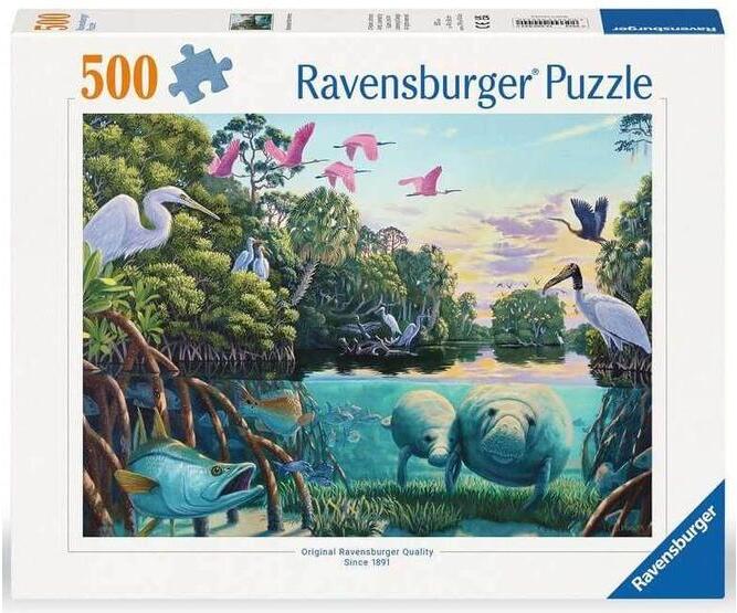 A Ravensburger a világ legnagyobb puzzle gyártója. Széles választékban kapható kirakói a minőséget és a sokszínűséget képviselik. A Ravensburger 500 db-os - Lamantin pár puzzle képén két cuki lamantin, más néven tengeritehén, karibi manátusz vagy karibi manáti úszkál békésen.