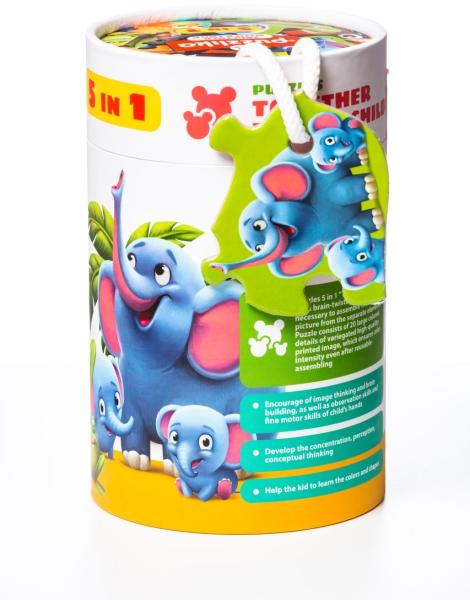 Hogy néznek ki az állatok kicsinyei? Az Állatok és kölykeik 5 az 1-ben fa XXL puzzle élénk színű festéssel, fából készült mozaikdarabokat tartalmaz, ami9ken állatokat, és kölykeiket láthatod. A játék lényege, hogy párosítsd össze a képeket, hogy megtaláld, melyik anya állathoz melyik gyerekek tartoznak. Az Állatok és kölykeik 5 az 1-ben 33 darabos fa XXL puzzle fejles