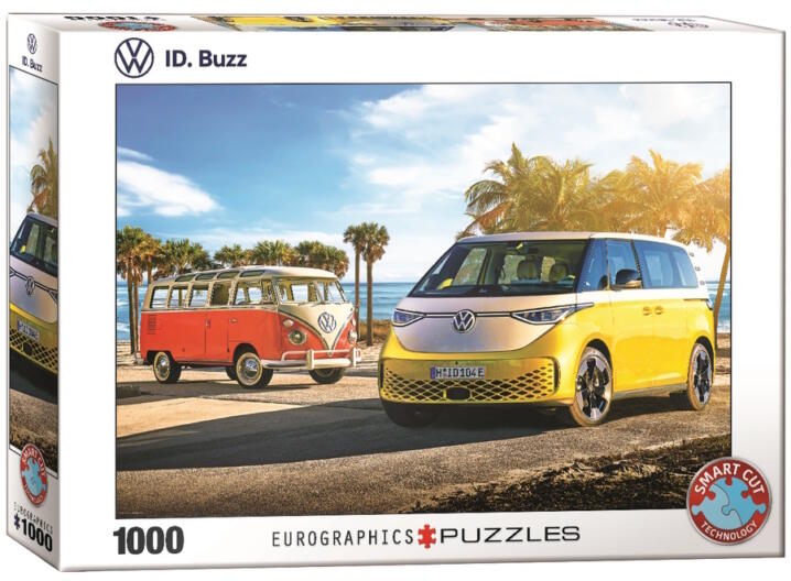 Az EuroGraphics 1000 db-os puzzle - VW ID Buzz című képen a legújabb Volkswagen elektromos kisbusz és a legelső T1 modell láthatók. Az EuroGraphics gyártó nagy figyelmet fordít a környezettudatos működésre, úgy a termékeik előállításánál, mint a dolgozóik környezetbarát gondolkodásra való ösztönzésénél. Tegyünk érte, hogy ezeket a lenyűgöző helyeket megőrizz