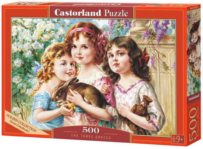 A Castorland kirakók sokszínűségükről ismertek és igen széles választékban kaphatóak. Hagyományos képi témáik mellett különlegesebb, városokat és nevezetességeket ábrázoló kirakókat is találunk kínálatukban. A Castorland 500 db-os puzzle - A három grácia című képen három, gyönyörű kislány látható.