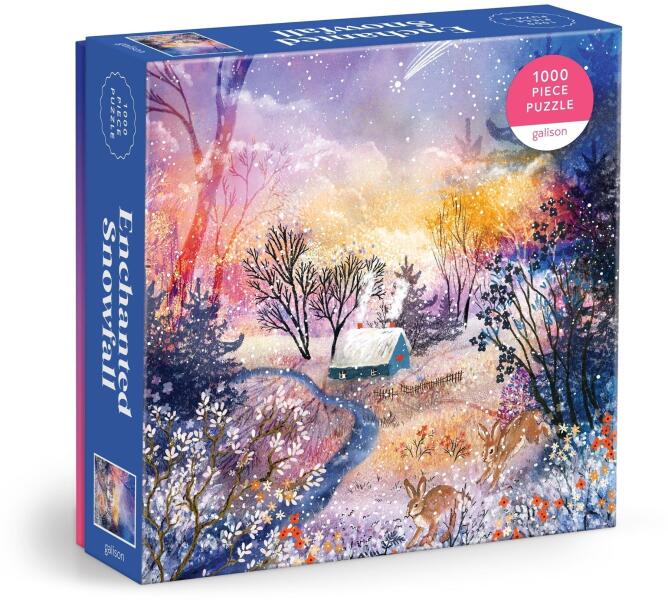 1000 darabos kirakó . Márka: Galison Művész: Laivi Põder Kirakott kép méret: 50,8 x 68,5 cm Doboz méret: 20,5 x 20,5 x 5 cm Eredeti cím: Enchanted Snowfall GTIN: 9780735382558