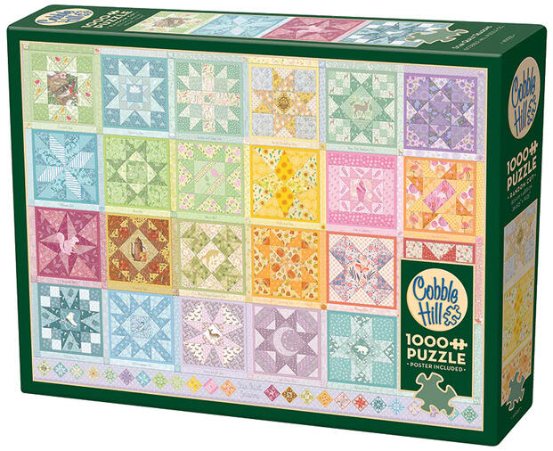 A kanadai Cobble Hill a nosztalgikus, színes, és mindemellett kiváló minőségű kirakókkal kívánja örvendetessé tenni a játék élményt kicsiknek és nagyoknak egyaránt. A Cobble Hill 1000 db-os puzzle - Star Quilt Seasons című képen csodás évszakos mozaik látható.
