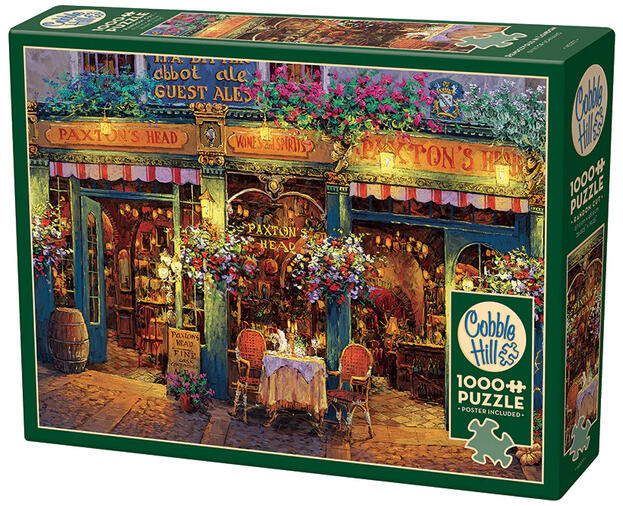 A kanadai Cobble Hill a nosztalgikus, színes, és mindemellett kiváló minőségű kirakókkal kívánja örvendetessé tenni a játék élményt kicsiknek és nagyoknak egyaránt. A Cobble Hill 1000 db-os puzzle - Rendezvous in London című képen képzelje el, hogy az asztal mellett ül egy csendes bisztróban, arany fényekkel és virágillatokkal. Nem lenne kellemes itt vacsorázni? Vagy t
