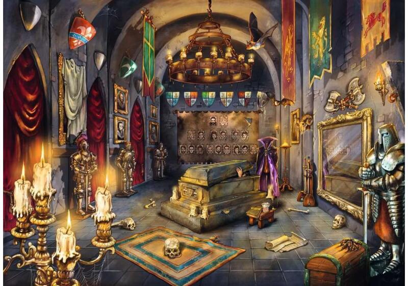 A Ravensburger a világ legnagyobb puzzle gyártója. Széles választékban kapható kirakóik a minőséget és a sokszínűséget képviselik. A Ravensburger 1000 db-os - Vámpír kastély - A kirakott képen egy vámpír szoba látható.