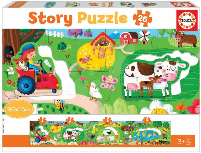 Puzzle legkisebbeknek Story the Farm kiváló ajándék kisfiúknak és kislányoknak már 3 éves kortól. Ezek a nem mindennapi képkirakók fejlesztően hatnak a gyerekek képességeire. A csomagban 4 fajta puzzlera lel csöppsége a farm életképekből, melyeket panoráma puzzleként össze is tud illeszteni. A puzzle összesen 26 darabos, az egyes elemek helyükre helyezése során a kicsik