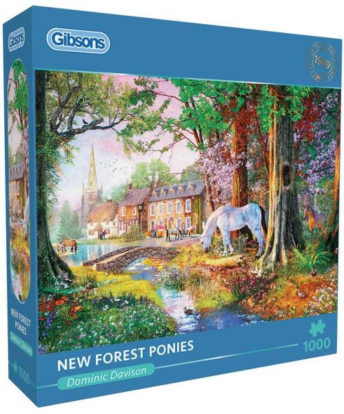 1000 darabos kirakó . Márka: Gibsons Művész: Dominic Davison Kirakott kép méret: 68 x 49 cm Doboz méret: 24 x 24 x 6 cm Eredeti cím: New Forest Ponies GTIN: 5012269063974