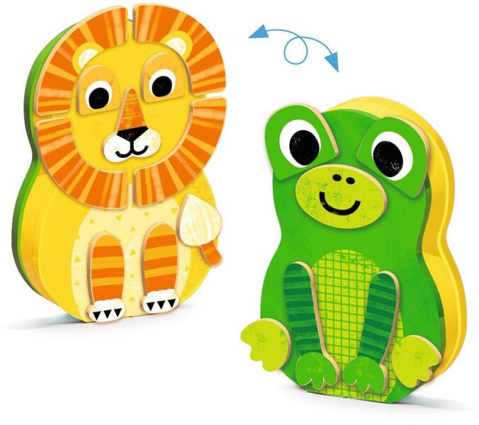 Fém formadobozban mágneses kirakók. A dobozban érdekes, minőségi fafigurák vannak mágnessel, különböző textúrákkal borítva. A gyermek a fából készült állatfigura puzzlekkel játszik a fémdobozon, hogy oroszlánt, pillangót, papagájt, békát vagy még sok mást alkot! A fémdoboz, önmagában is jópofa tárolódoboza a hozzá tartozó kiegészítő elemeknek. A faalapra app