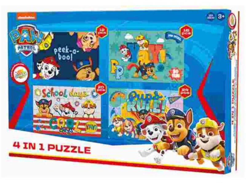 Paw Patrol, Mancs Őrjárat puzzle 4 az 1-ben Ajánlott 3 éves kortól. Mérete: 19x29 cm Tartalma: - 1 db 12 db-os puzzle - 1 db 16 db-os puzzle - 1 db 20 db-os puzzle - 1 db 24 db-os puzzle