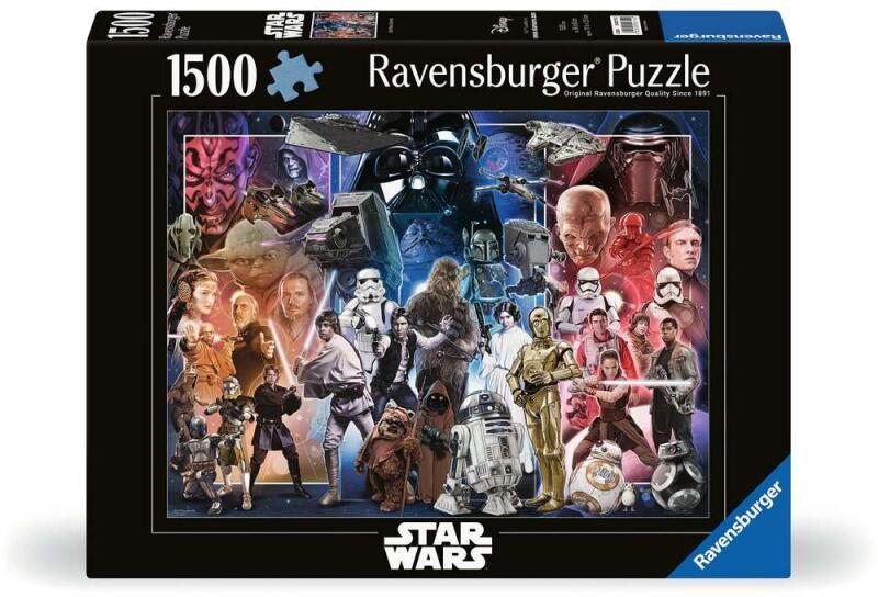 1500 darabos kirakó Új, védőfólia nélküli kiadás!Új, kisebb dobozos kiadás! Márka: Ravensburger Művész: Lucasfilm Kirakott kép méret: 80 x 60 cm Doboz méret: 33,5 x 25,5 x 5,5 cm Eredeti cím: Star Wars Universe GTIN: 4005555007142