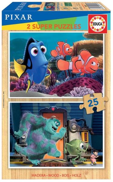 A fából készült Pixar Disney motívumos gyerek puzzle minden csӧppség vágya már 4 éves kortól . Minden gyerkőc szívesen képkirakózik, főleg ha kedvenc hőse ábrája tárul elé. A csomagolás 2 darab Pixar szereplőket ábrázoló kép kirakását teszi lehetővé, melyek képenként 25 darabból állnak (2x25 puzzle elem). A mesés puzzle minőségi fából készült és megfelel
