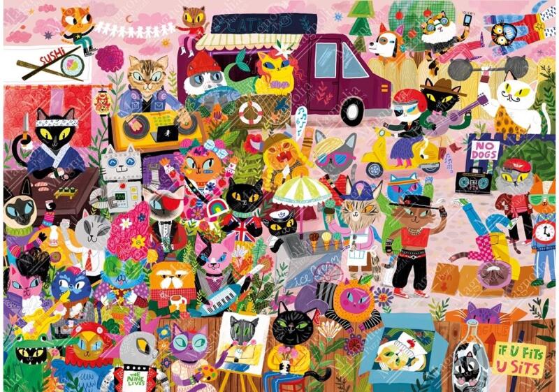 A Magnolia Puzzle az ALB Company márkaneve, amelyet 2020-ban alapítottak Izmirben. Termékei magas minőséggel, kiváló vágási technikával, matt és bársonyos felülettel, valamint exkluzív képekkel tűnnek ki. Világhírű művészek alkotásai teszik egyedivé kirakóikat. A Magnolia 1000 db-os puzzle - Cat Crowd (2120) kirakó képén egy nagyon színes macskakollázs látható.