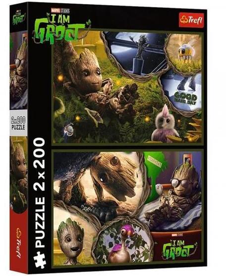 A Trefl kirakók kiváló minőségű, speciális fényvisszaverő papír felhasználásával, ökológiai anyagból készülnek, amely megkönnyíti az összeillesztést. A Trefl 2 x 200 db-os puzzle - Én vagyok Groot kirakott képein kedvenc Marvel hősünk látható, Groot a Galaxis őrzőiből.