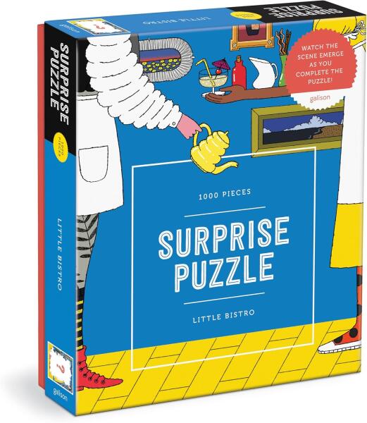 1000 darabos kirakó Meglepetés kirakó. A kirakó képét titok fedi. Márka: Galison Művész: Hye Jin Chung Kirakott kép méret: 50,8 x 68,5 cm Doboz méret: 21 x 28,6 x 5,1 cm Eredeti cím: Little Bistro GTIN: 9780735377769