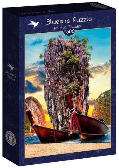 A francia Bluebird 2019 óta van jelen a kirakók világpiacán. Magas minőségű, környezettudatos technológiával készült, mégis megfizethető áron elérhető puzzle képei közt elsősorban művészi alkotások találhatók. Az 1500 db-os Bluebird puzzle - Phuket, Thailand című képén az ikonikus tengerpart látható két csónakkal. Thaiföld legnagyobb szigete, Phuket jól ismert é