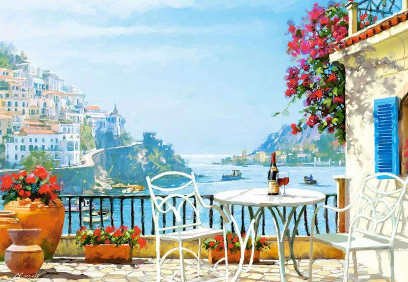 A Castorland kirakók sokszínűségükről ismertek és igen széles választékban kaphatóak. Hagyományos képi témáik mellett különlegesebb, városokat és nevezetességeket ábrázoló kirakókat is találunk kínálatukban. A Castorland 1000 db-os puzzle - Mediterranean Wine for Two című képen egy csodálatos mediterrán város teraszáról láthatjuk a hajókat, ahogy érkeznek a ki