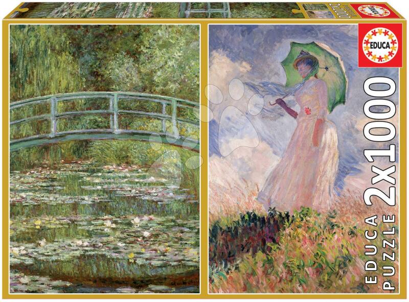 Puzzle The Water-Lily Pond és Woman with Parasol Turned to the Left motívumokkal örömet szerez minden képkirakó rajongónak a spanyol Educa vállalat műhelyéből, akik az ismert Claude Monet festő rajongói. Az egyedi puzzle csomag 2x1000 darabos . Puzzle minőségi alapanyagból készült és összeillesztés után két képet jelenít meg. Az elemek megfelelnek a biztonsági szabványok