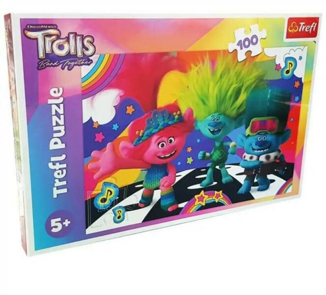 A Trefl kirakók kiváló minőségű, speciális fényvisszaverő papír felhasználásával, ökológiai anyagból készülnek, amely megkönnyíti az összeillesztést. A Trefl 100 db-os puzzle - Trollok című képen az amerikai számítógépes animációs zenés vígjáték aranyos szereplői láthatók.