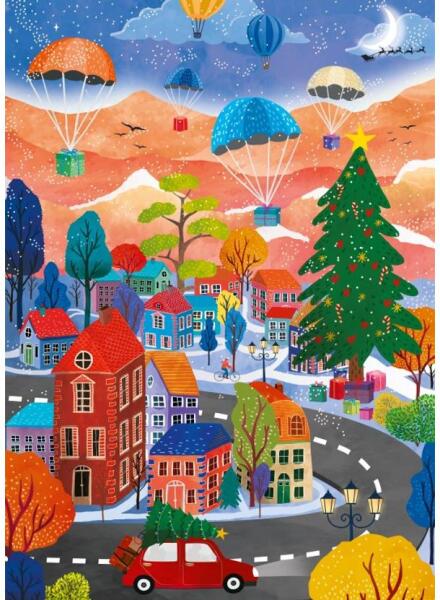 1000 darabos kirakó . Márka: New York Puzzle Company Művész: Max Tilse Kirakott kép méret: 67,63 x 48,9 cm Doboz méret: 25,5 x 20,5 x 5 cm Eredeti cím: Dam Charming City GTIN: 840291701770
