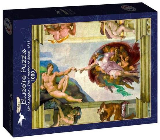 A francia Bluebird 2019 óta van jelen a kirakók világpiacán. Magas minőségű, környezettudatos technológiával készült, mégis megfizethető áron elérhető puzzle képei közt elsősorban művészi alkotások találhatók. Az 1000 db-os Bluebird puzzle - Michelangelo - The Creation of Adam 1511 című képén Michelangelo Buonarroti egyik leghíresebb alkotását, Ádám teremtését l