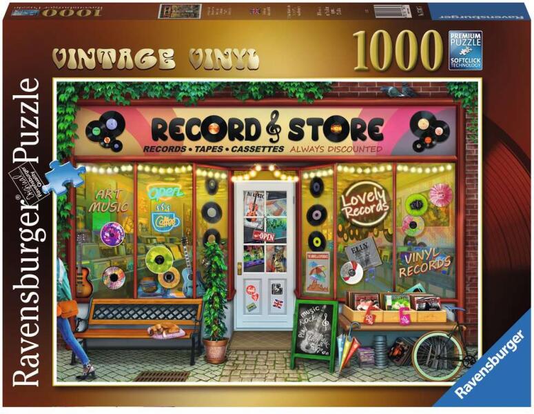 1000 darabos kirakó . Márka: Ravensburger Művész: Tetiana Bulba Kirakott kép méret: 70 x 50 cm Doboz méret: 37,5 x 27 x 5,5 cm Eredeti cím: Vintage Vinyl GTIN: 4005556173075
