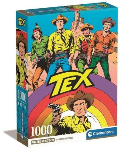 Az olasz Clementoni kirakók kiváló minőségű, strapabíró darabokból készülnek, a puzzle széles választékban kapható minden korosztályt megcélozva. Clementoni 1000 db-os puzzle COMPACT puzzle - High Quality Collection - Tex (39841) - Ezúttal Tex témájú kép látható a kirakott képén, melyen az ikonikus cowboy és kalandjai elevenednek meg a puzzle darabjain, itt éppen Tex fe