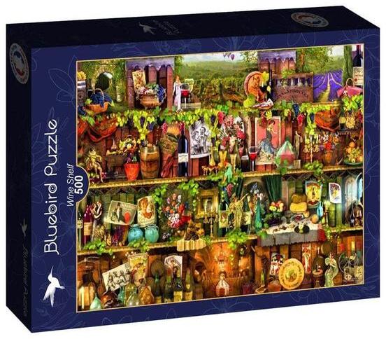 A francia Bluebird 2019 óta van jelen a kirakók világpiacán. Magas minőségű, környezettudatos technológiával készült, mégis megfizethető áron elérhető puzzle képei közt elsősorban művészi alkotások találhatók. Az 500 db-os Bluebird puzzle - Wine Shelf című képén Aimee Stewart alkotása látható. Minden, ami bor: a polcokon nosztalgikus hangulatú boros pincék és sz
