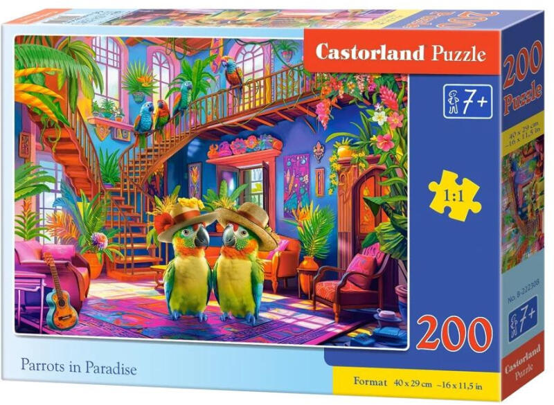 A Castorland kirakók sokszínűségükről ismertek és igen széles választékban kaphatóak. Hagyományos képi témáik mellett különlegesebb, városokat és nevezetességeket ábrázoló kirakókat is találunk kínálatukban. - A kirakott kép mérete: 40 x 29 cm Papagájok a Paradicsomban Termékcsalád: 200 Minőségi termék. Származási ország: Lengyelország A kirakott puzzle mére