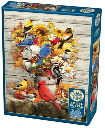 A kanadai Cobble Hil l a nosztalgikus, színes, és mindemellett kiváló minőségű kirakókkal kívánja örvendetessé tenni a játék élményt kicsiknek és nagyoknak egyaránt. Ezen a Cobble Hill 500 db-os puzzle - Fall Harvest (45039) kirakón látható az őszi szüret eredménye, egy szép, nagy csokor és egy sereg madárka. Bármelyik szoba falán jól mutat!