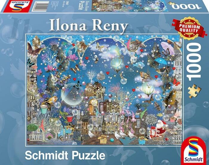 A Schmidt puzzle kiváló minőségű, német gyártmányú kirakó. A speciális matt lakk felhasználás következtében a kirakók fényvisszaverődés nélkül tárják elénk a szebbnél szebb képeket. A Schmidt 1000 db-os puzzle - Blue Night Sky, Ilona Reny egy színpompás, részletgazdag képen mutatja be karácsony estéjét.